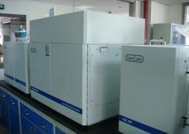 该稳定同位素比质谱仪由Sercon EA、Sercon 20-20、GC-CP和岛津GC-2010等主要部件构成。元素分析仪Sercon EA适用于土壤,粘性液体,植物组织和有机化合物等样品的制备和纯化。Sercon 20-20是精密的用于连续流和双路进样的气体稳定同位素比质谱仪,具有较高的灵敏度和较好的重现性。高效涡轮分子泵排除了连续流分析时对丰度灵敏度的影响和记忆效应。